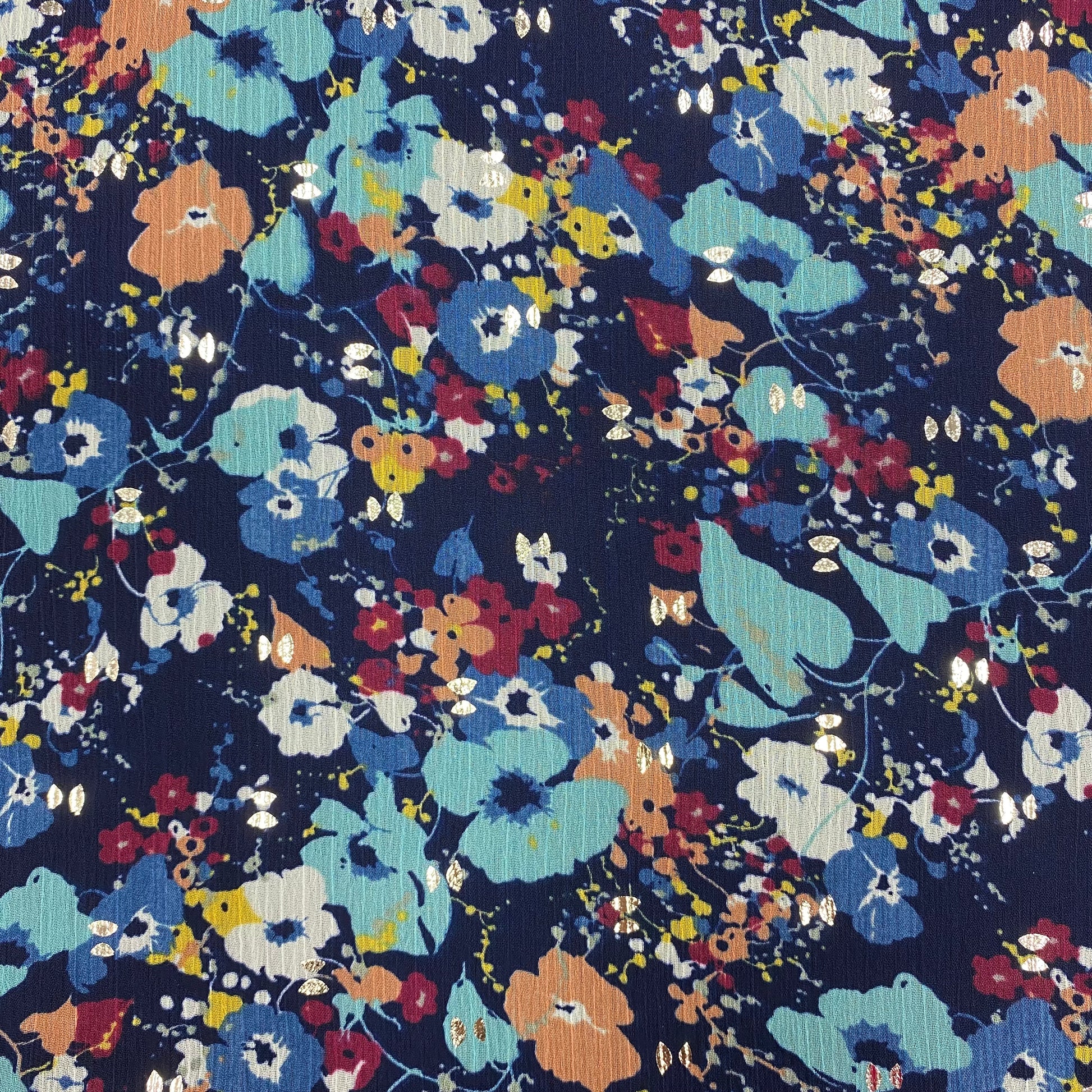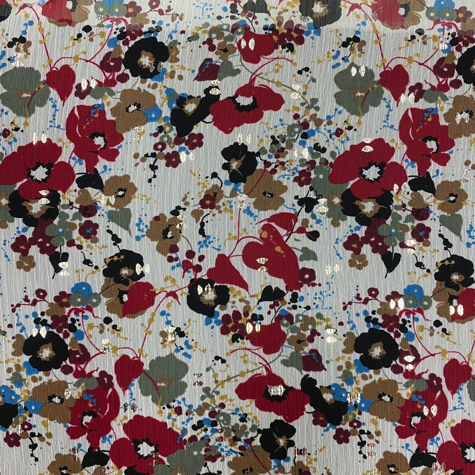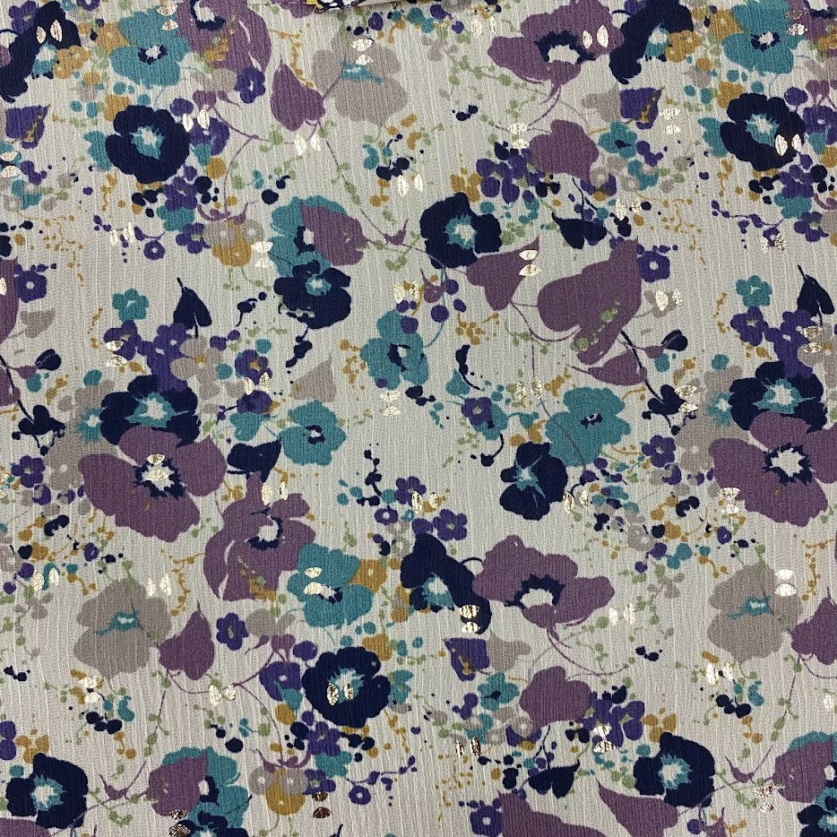 Coupon de 3 mètres de mousseline imprimé Pensée avec un fil lurex or