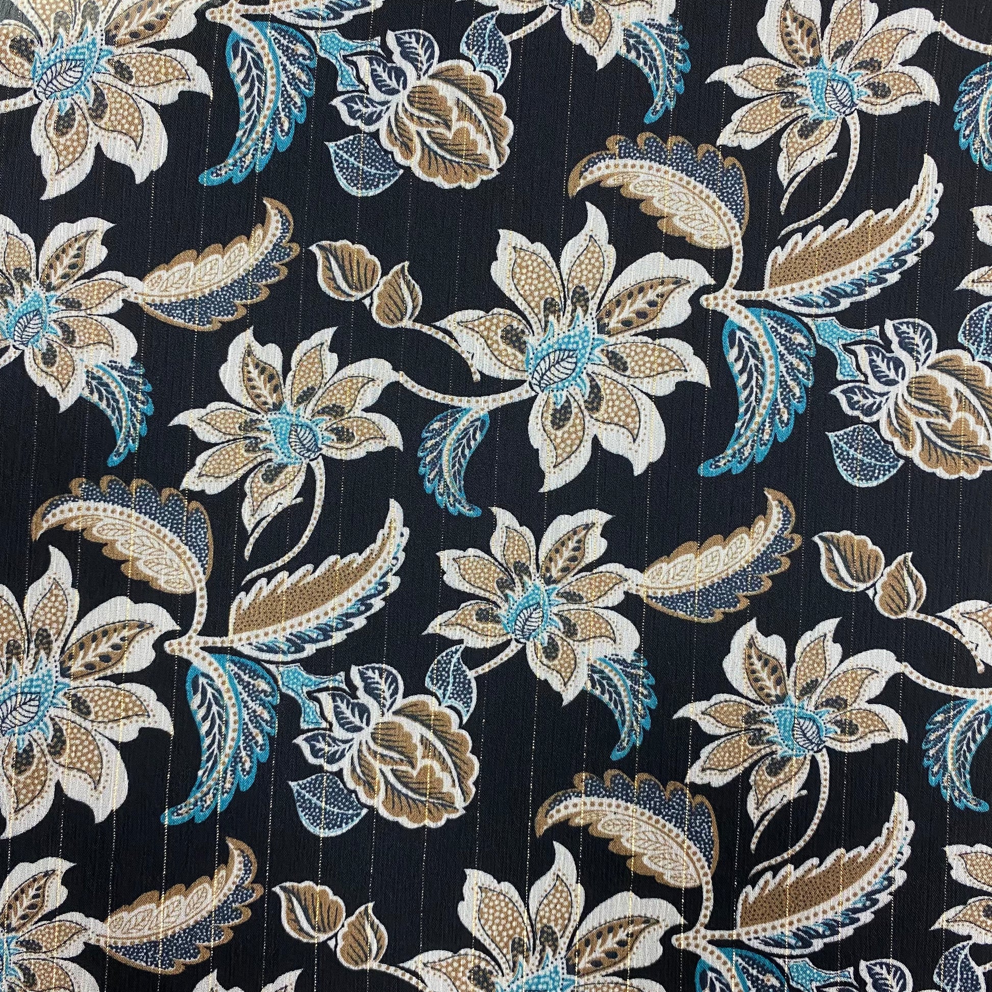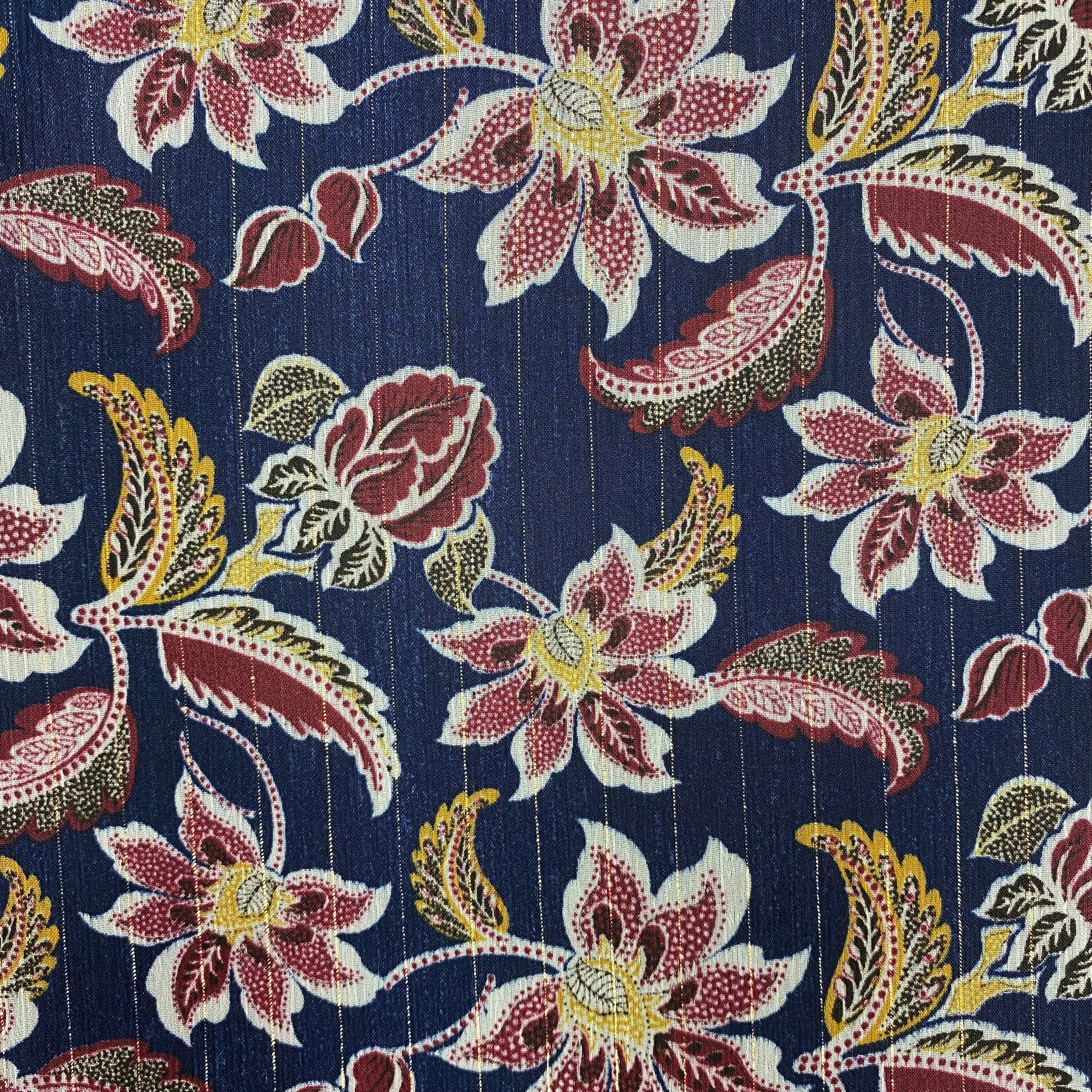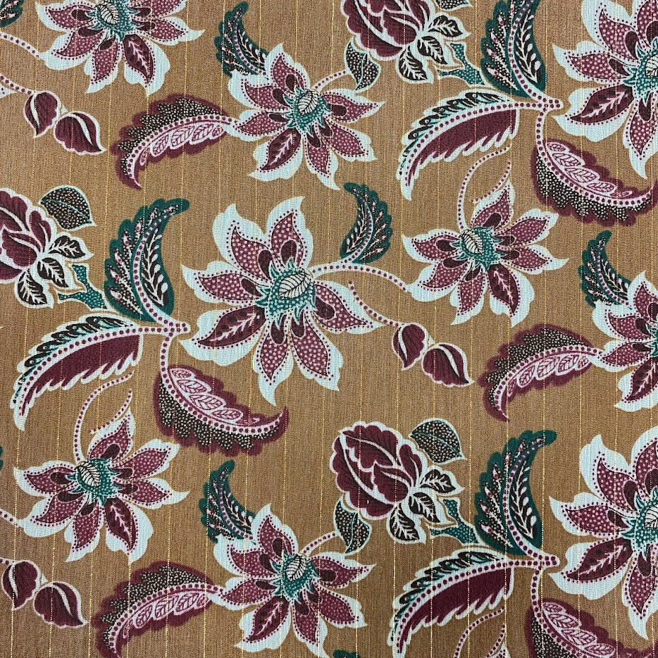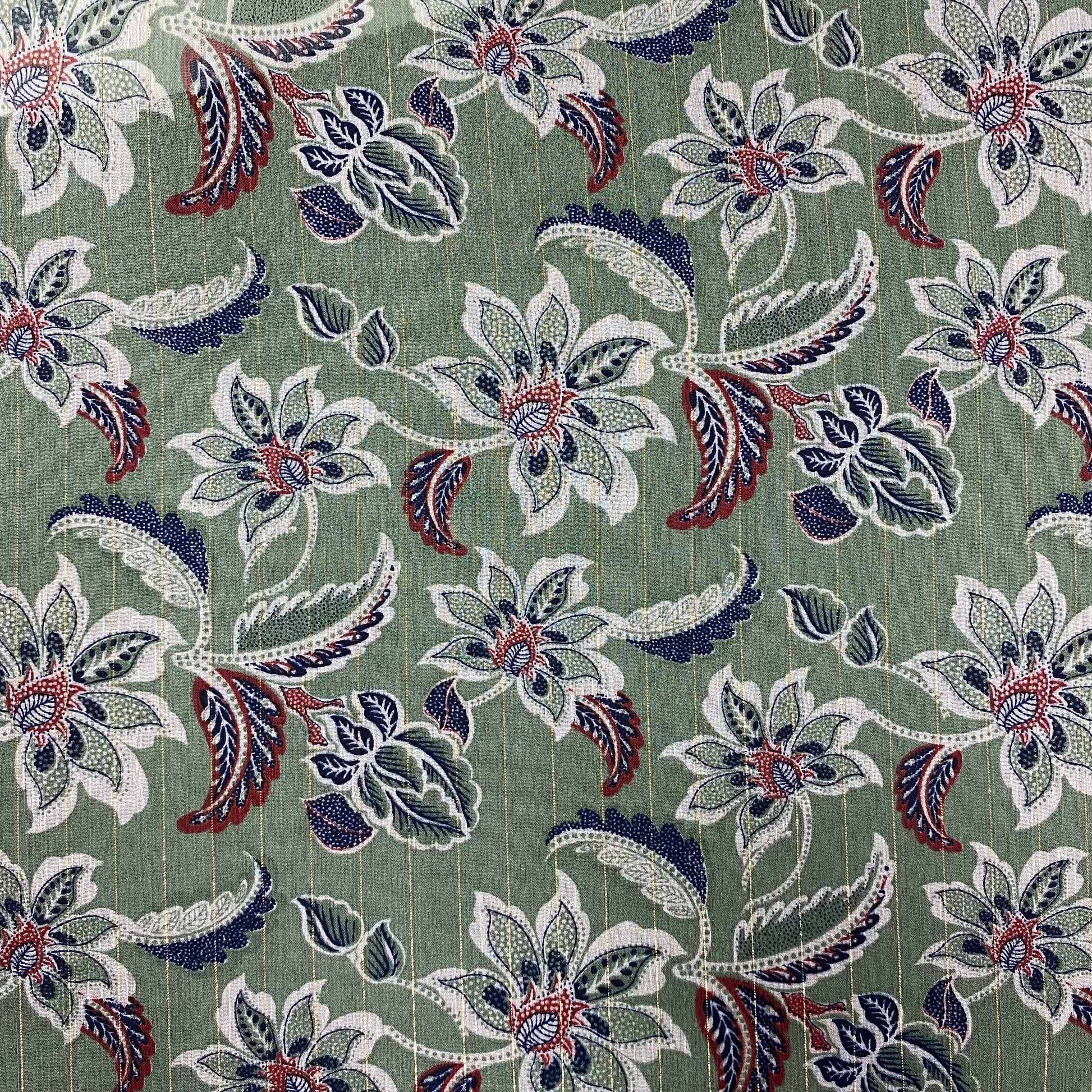 Coupon de 3 mètres de mousseline imprimé new folk avec rayure lurex or