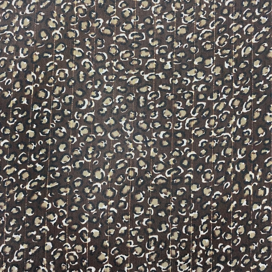 Coupon de 3 mètres de mousseline imprimé mini léo avec rayure lurex or