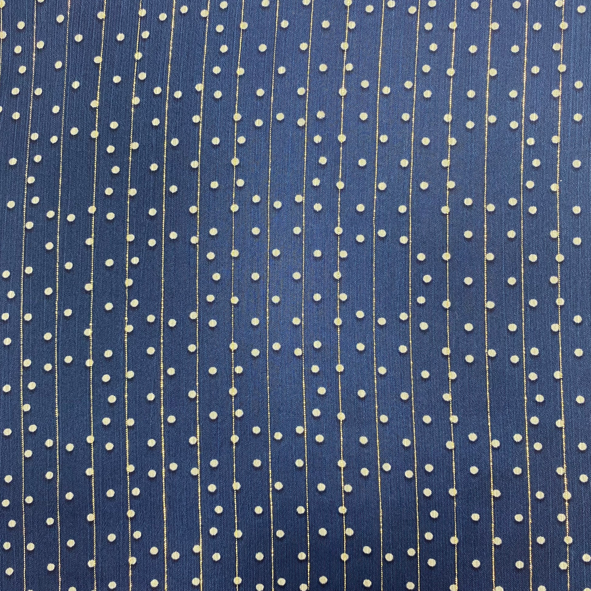 Coupon de 3 mètres de mousseline à pois avec rayure lurex or